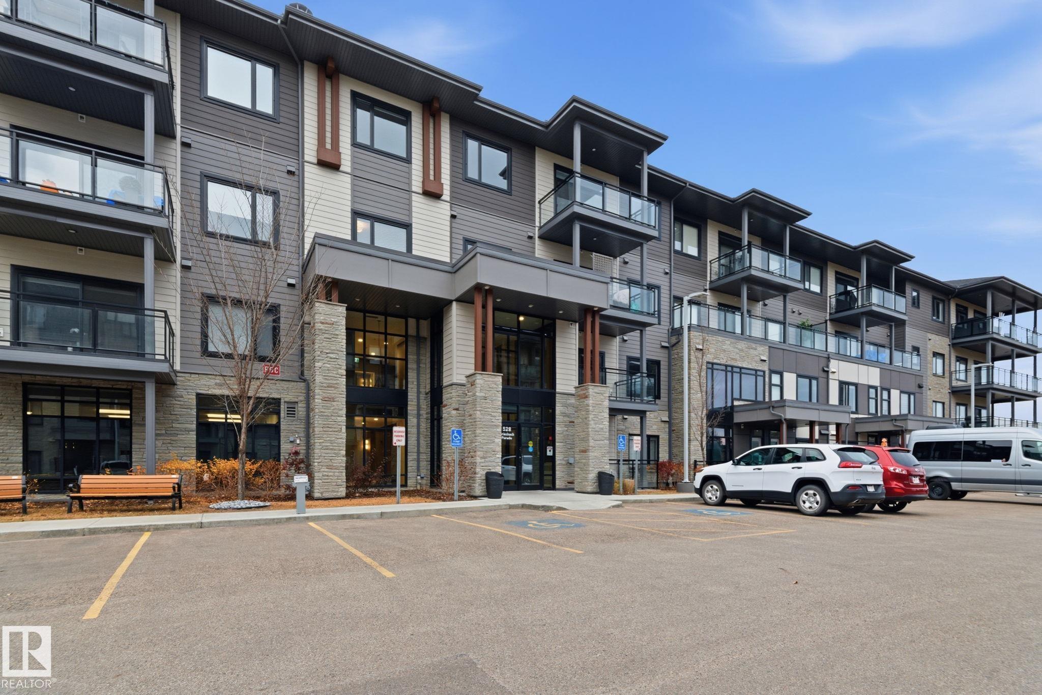 Experience refined luxury living at Veritas, the premier condominium residence in the community of Griesbach. This exquisite former show suite blends elegance and comfort, showcasing over $25,000 in designer upgrades with captivating park and lake views. Thoughtfully designed, this main-floor retreat features gourmet-inspired quartz countertops, a custom laundry room with counter and built-in cabinetry, a pantry, and a stylish bar area with wine fridge. Sophisticated finishes, open-concept living, and ser...