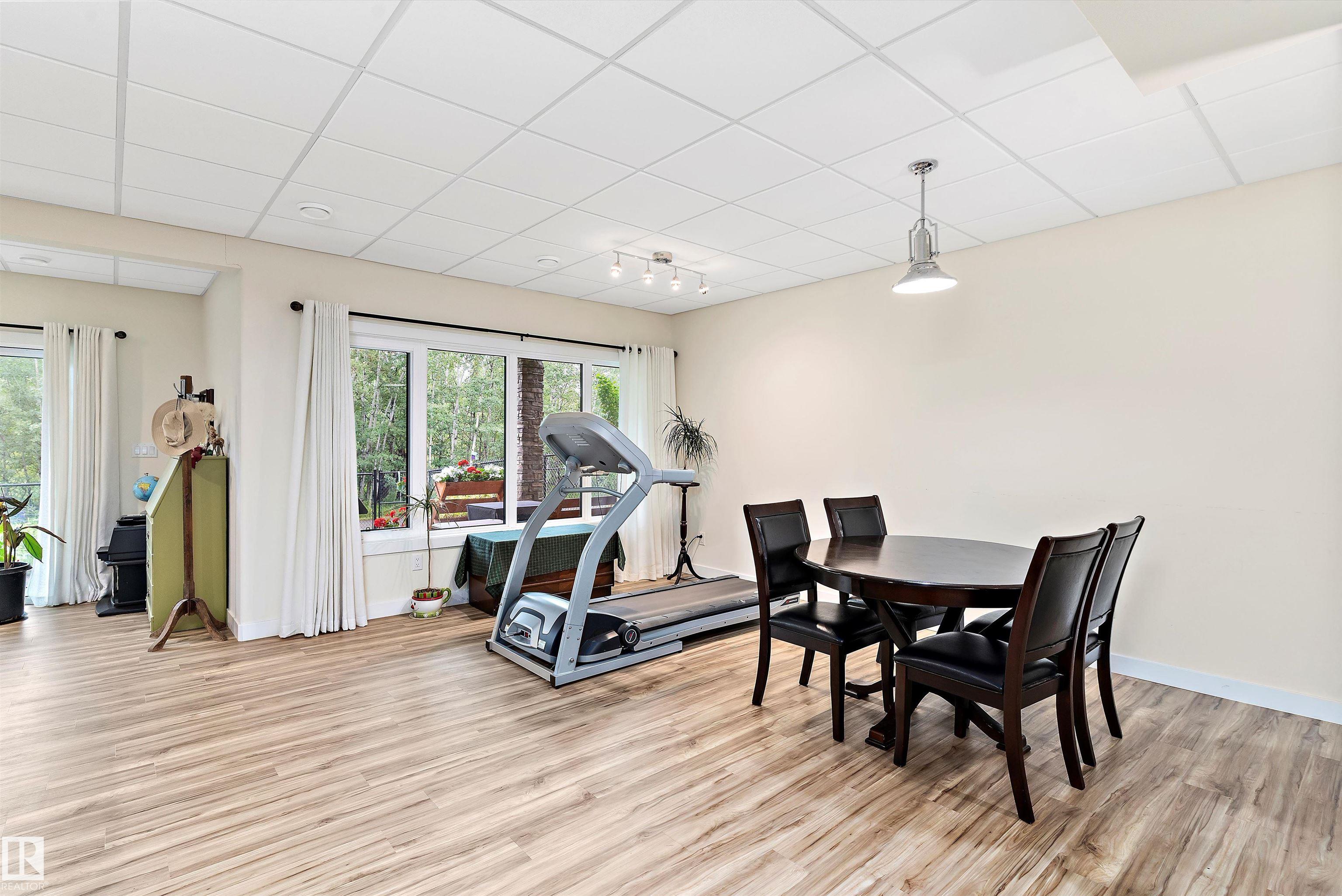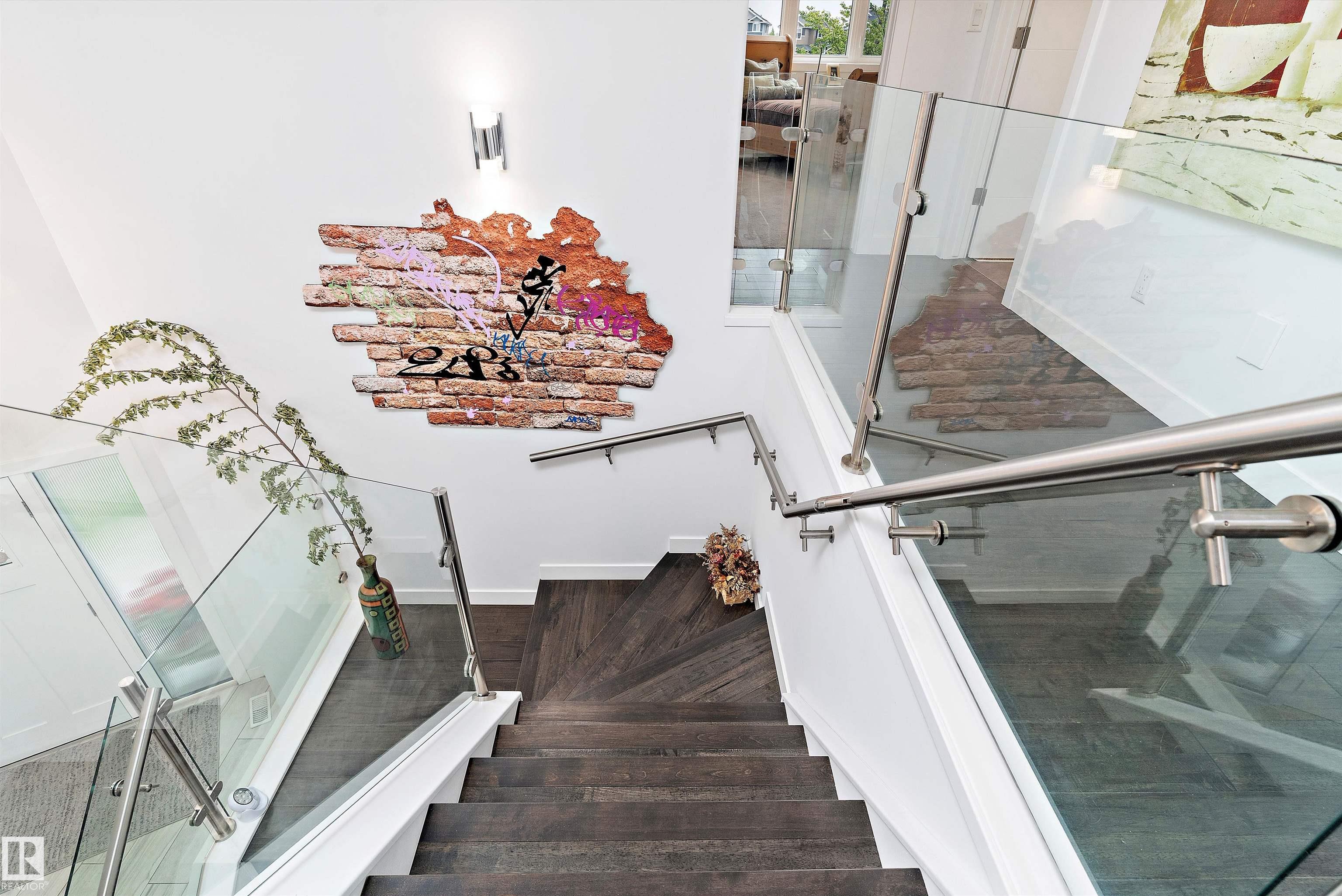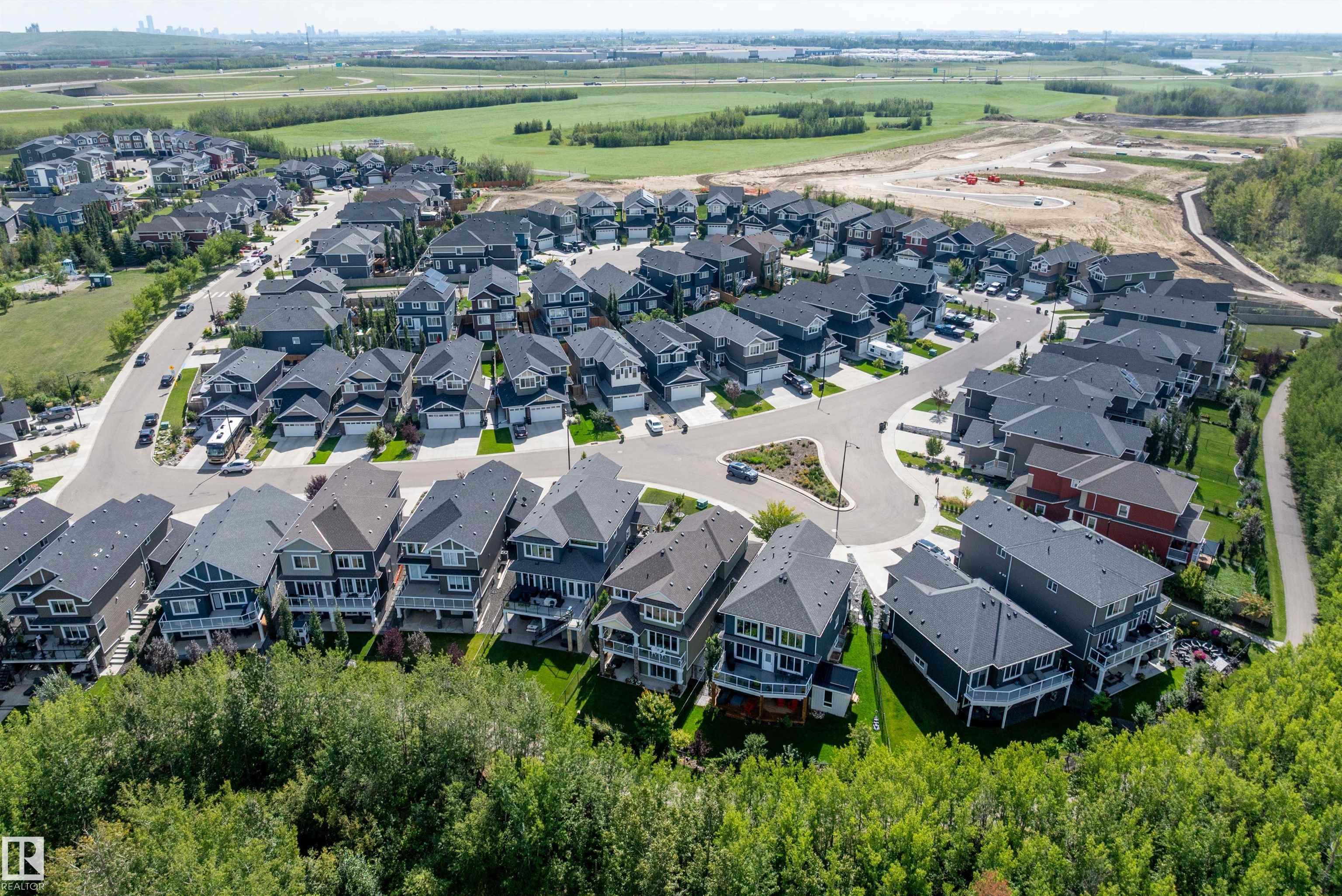 Modern custom-built walkout backing trees & trails! Bright open main floor with tile flooring, linear fireplace & patio doors to a covered, glass-railed deck. Designer kitchen features white cabinetry + navy island, quartz counters, subway backsplash, stainless appliances, and a large island with sink & built-in microwave. Dream laundry room with sink & builtin Cabinetry. The primary retreat offers a spa ensuite with a free-standing tub and oversized glass shower with a rain head. The walkout level extends ...