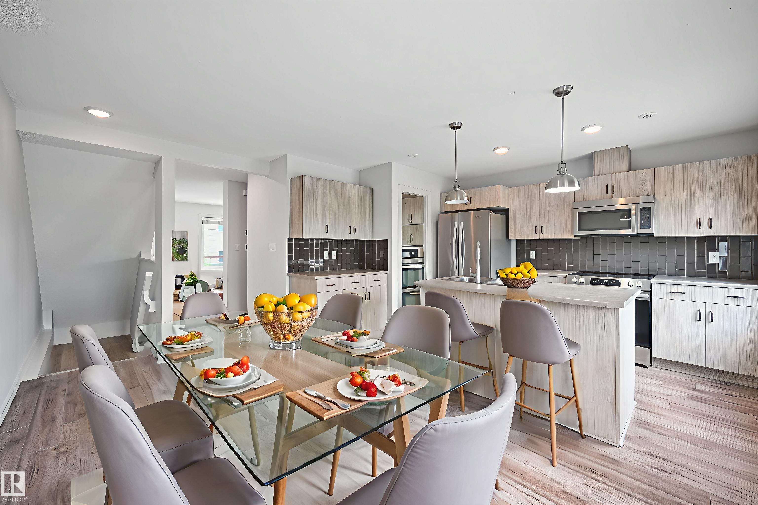 Perfect property for first-time home buyers & investors in Southeast Edmonton. This 3 bed townhome boasts an open concept, ample natural light, & hardwood flooring throughout the main level. The kitchen is spacious w/ stainless steel appliances, pantry, full height cabinetry, subway tile backsplash & large island. The upper level offers 3 bedrms, transom windows, & plenty of storage: the primary includes a 4 piece ensuite w/ dual sinks, walk-in shower & walk-in closet. 2nd bdrm also has ensuite/walk-in clos...