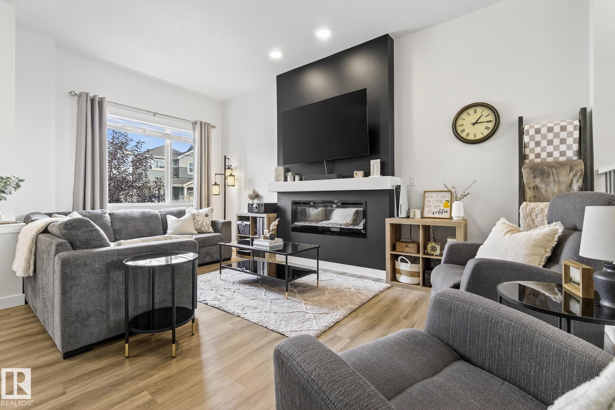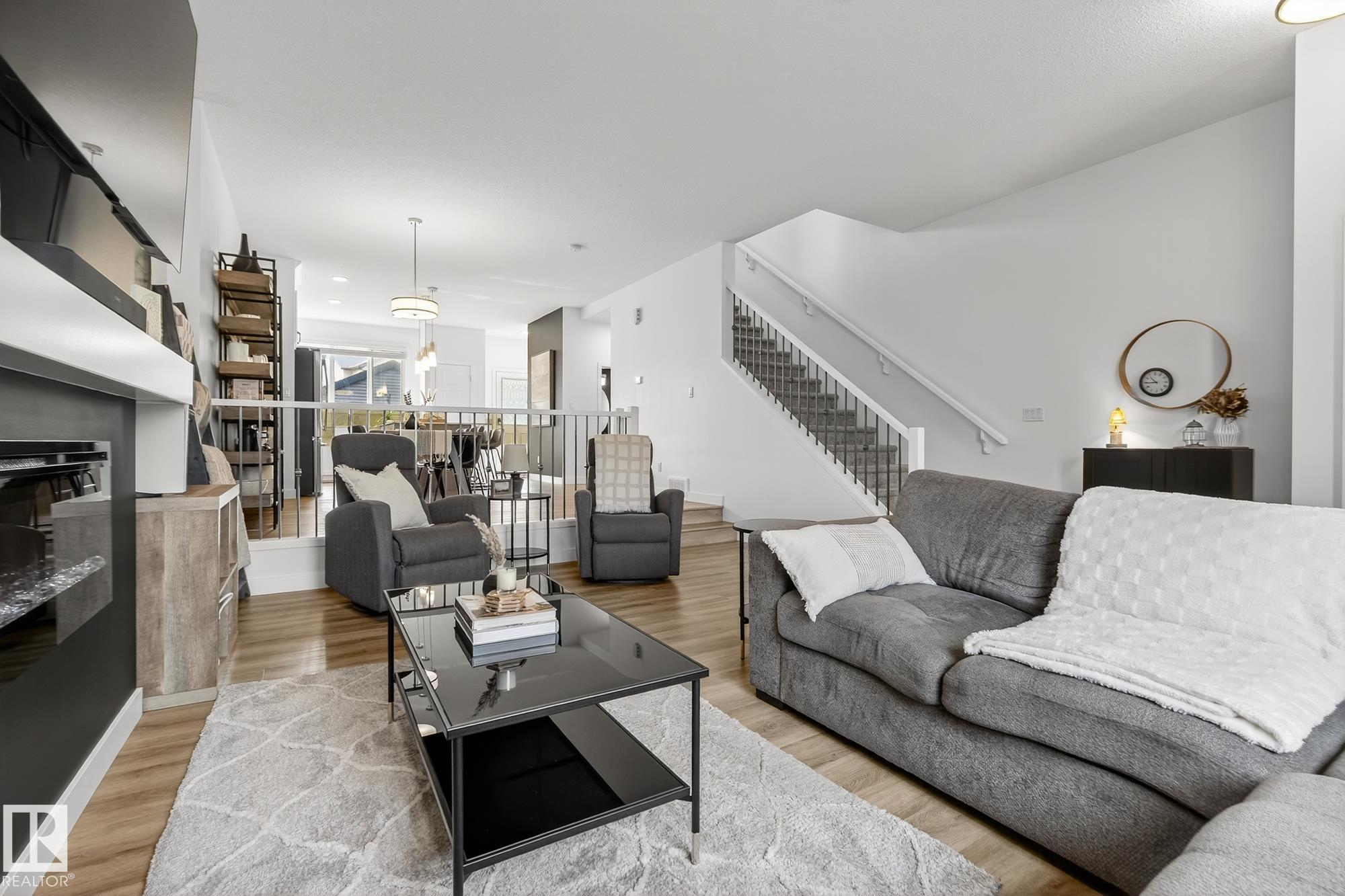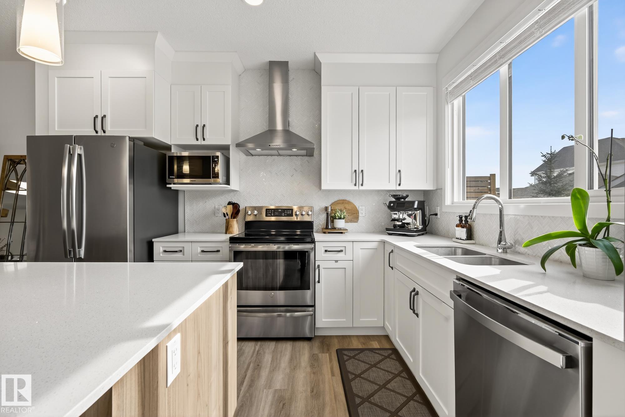 This chic and practical home spans 1,705 square feet and includes 3 bedrooms and 2.5 bathrooms, all set within a landscaped yard and featuring a double detached garage. Nestled in the sought-after Edgemont community on Edmonton's Westside, this family-friendly neighborhood boasts ravines, ponds, and scenic walking trails. As you step inside, you're greeted by soaring 10' ceilings in the foyer and living room, complemented by elegant spindle railing throughout. The main floor showcases stylish Luxury Vinyl P...