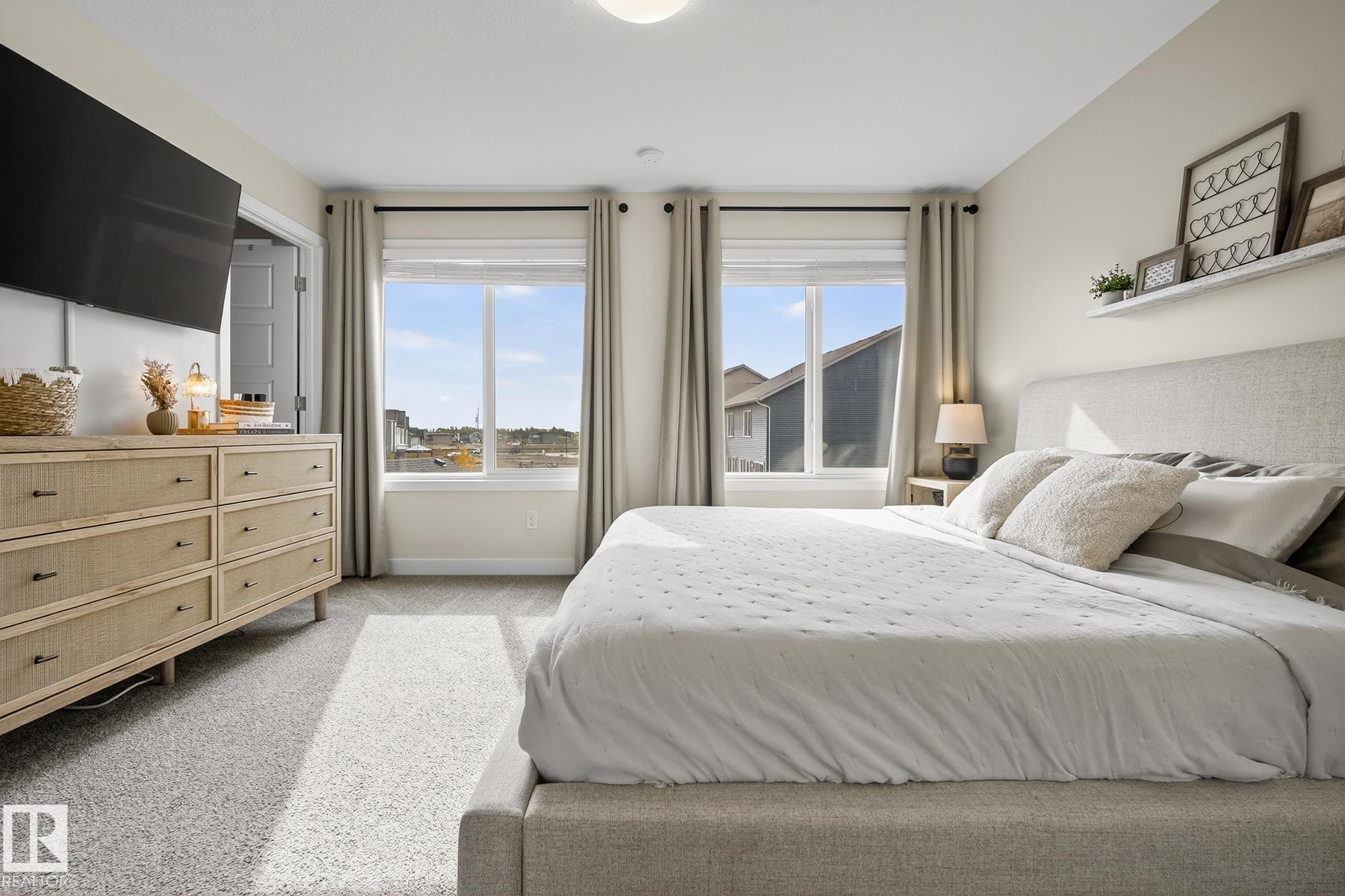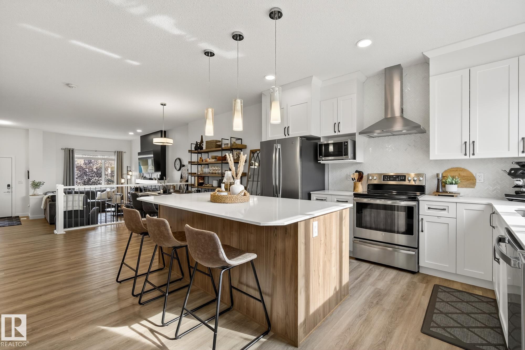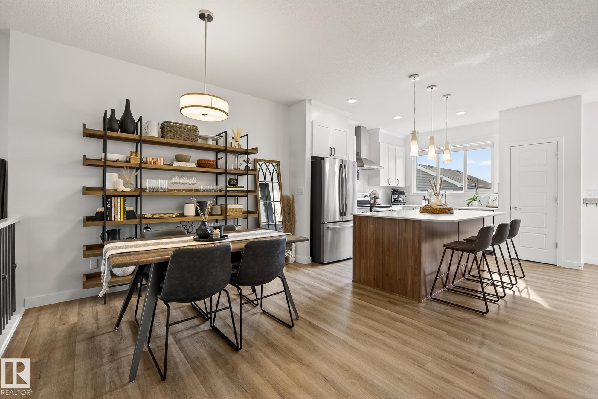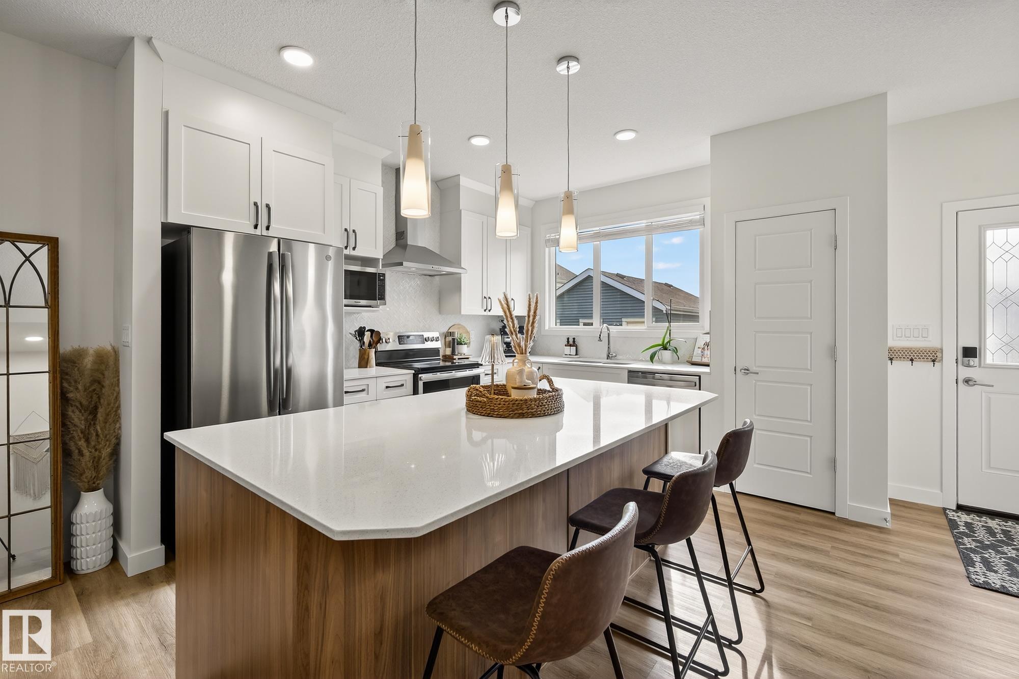 This chic and practical home spans 1,705 square feet and includes 3 bedrooms and 2.5 bathrooms, all set within a landscaped yard and featuring a double detached garage. Nestled in the sought-after Edgemont community on Edmonton's Westside, this family-friendly neighborhood boasts ravines, ponds, and scenic walking trails. As you step inside, you're greeted by soaring 10' ceilings in the foyer and living room, complemented by elegant spindle railing throughout. The main floor showcases stylish Luxury Vinyl P...