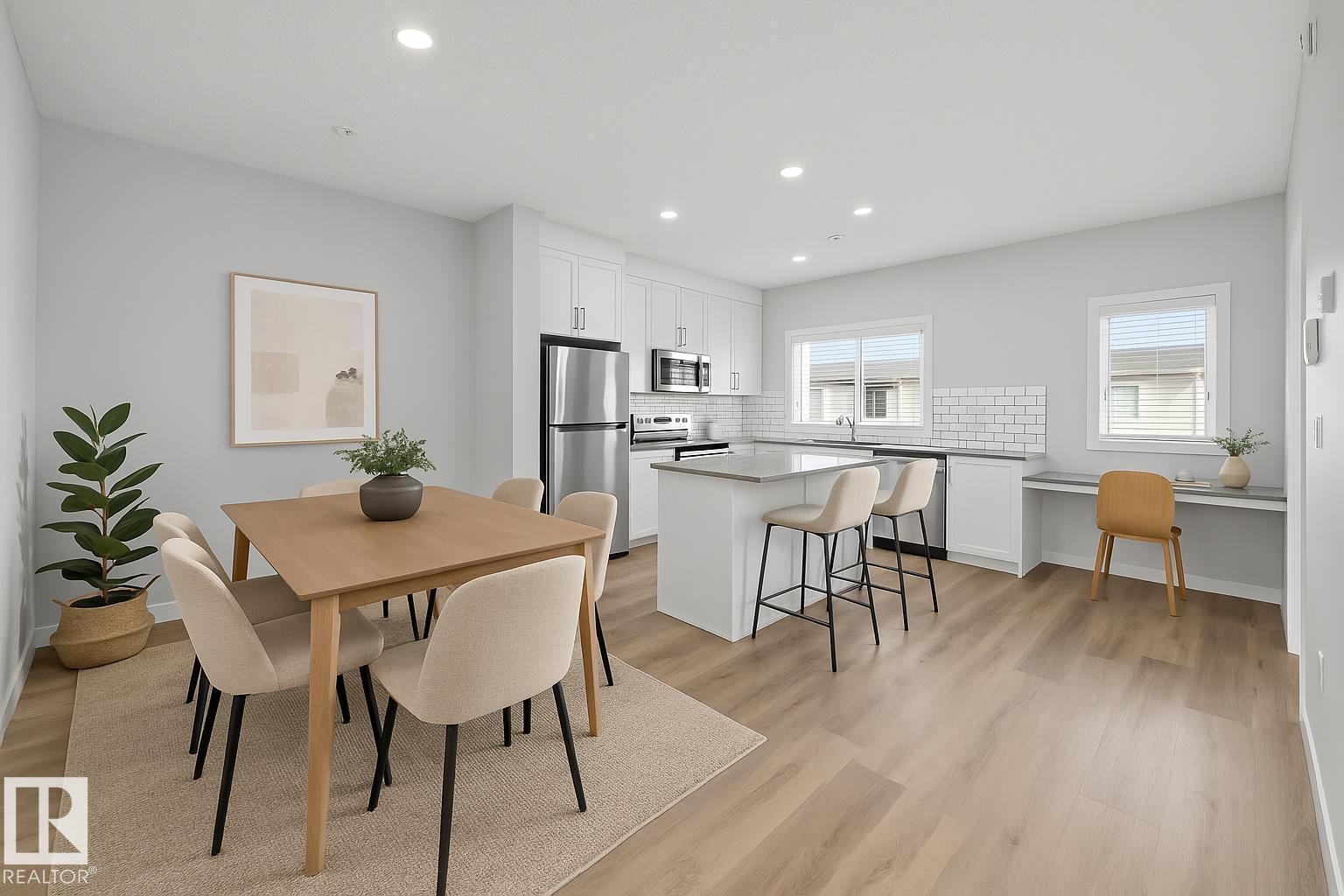 Bright, modern & spacious 3 bed/2.5 bath townhouse w/ double attached garage in the desirable Walker neighborhood. 1545 sf total living space. Perfect for first time home owners or investors! Main floor features 9' ceilings, vinyl plank floors & a roomy living room filled with natural light from the large South facing window. Kitchen offers a functional layout, stainless steel appliances, quartz countertops, tons of counter space, walk-in pantry, eating bar, & built in desk. Upper level also has 9' ceilings...
